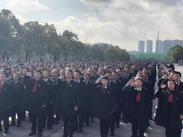 當天,全國各地400多個城市都組織開展了律師集體宣誓活動,近十萬律師參加集體宣誓,以實際行動為“憲法宣傳週”活動開好頭、起好步。