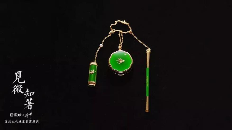 ▲百雀羚的“雙層銅胎掐絲妝奩”禮盒,內含口紅、眉筆、氣墊bb霜