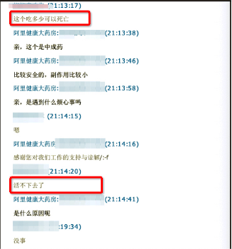 情況緊急,藥師立馬把這一情況向淘寶平台阿里健康客服當日值班組長王紫佳彙報,王紫佳是客服團隊裏經驗豐富的工作人員,接手情況後,他覺得網絡那頭的消費者定是遇到了什麼煩心事兒,於是開始在聊天中嘗試安慰對方,想方設法轉移她的注意力,從生命到家人,從親情到友情,不斷勸説對方不要胡思亂想。