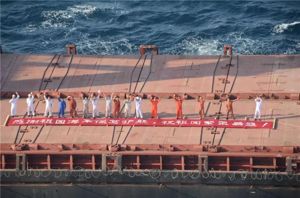 “我們愛你,祖國!感謝中國海軍護航”