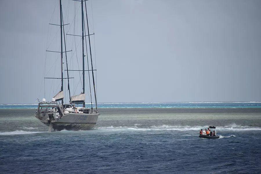 這張圖片顯示的是一艘正在進行環球航行的外籍帆船。去年12月31日,這艘帆船在南沙羣島三角礁擱淺,船上來自瑞士、法國和波蘭的三人被困。中國軍隊發現上述情況後,第一時間協調海警等海上搜救力量實施救援行動,成功救助上述三人脱險。