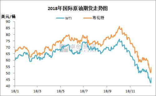 截至12月24日收盤,紐約商品交易所2019年2月交貨的輕質原油期貨價格下跌6.71%,收於每桶42.53美元。這是自2017年6月以來紐約原油期貨價格首次跌破43美元。此外,2019年2月交貨的倫敦布倫特原油期貨價格下跌了6.22%,收於每桶50.47美元。