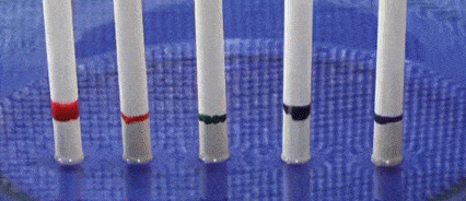 這種做法看上去好像有點作弊……實際上化學家們用的薄層色譜法可能更符合我們日常意義下的「彩虹」。他們利用毛細現象來區分不同的化學物質和成分。這些可以流動的液體(流動相)在毛細作用下緩慢地將混合物樣品中的不同組分由下而上帶動爬升。