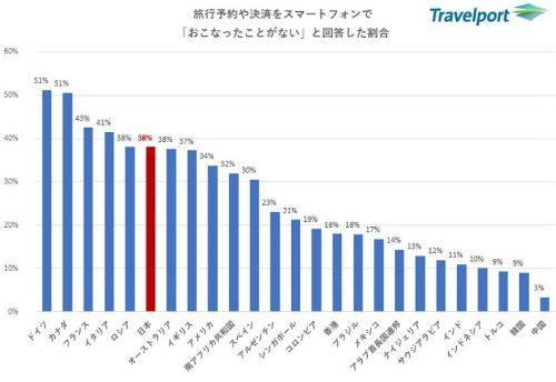 據統計,從未使用過智能手機進行旅行預約和結算的旅行者當中,日本人佔38%,韓國人佔9%,中國人只佔3%。