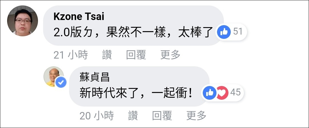 對於網民調侃這位帶着“沖沖衝”口號履新的“行政院長”,蘇貞昌也以自己的機智幽默進行回應: