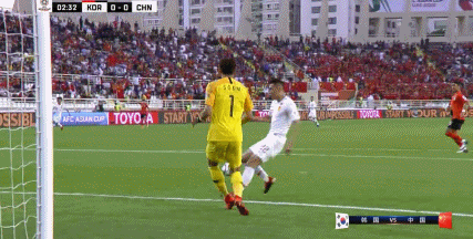 第27分鐘,孫興慜左路拿球殺到禁區前沿,搶在中國隊後衞封堵前低射,但這次射門沒有威脅,被顏駿凌輕鬆沒收。