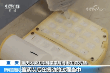 **重慶大學生命科學學院博士生 鄭先喆:**找一個水溶棉,把種子蓋在上面,蓋緊以後,在振動的過程當中,土和石頭就不會飛出來,可以達到很好的固定效果。而且水溶棉遇水就會溶化,當注水以後,水會把水溶棉溶化,植物也會吸水,然後開始生長。