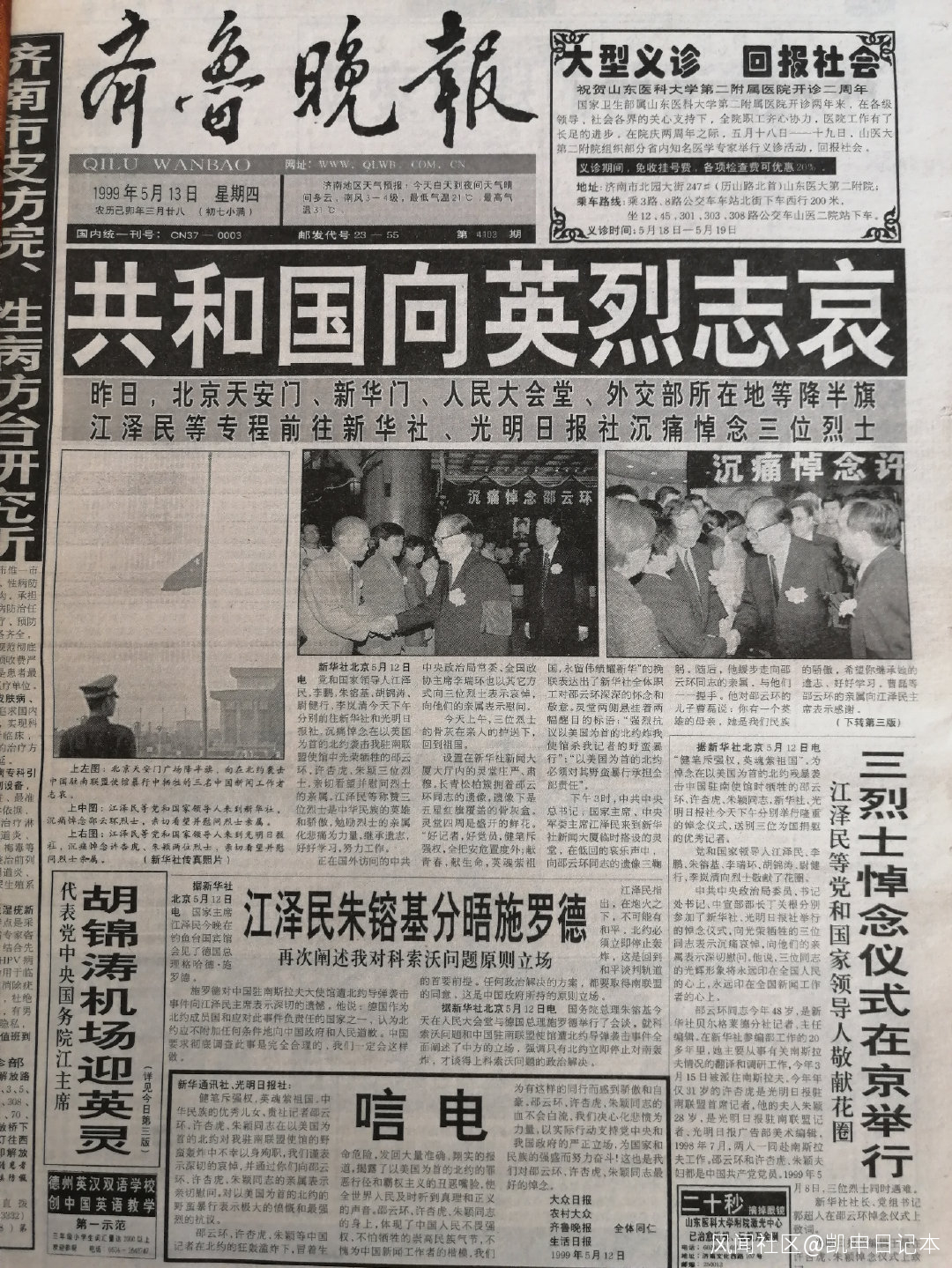 42、1999年5月12日,天安門、新華門、人民大會堂等多地降半旗,向烈士誌哀。