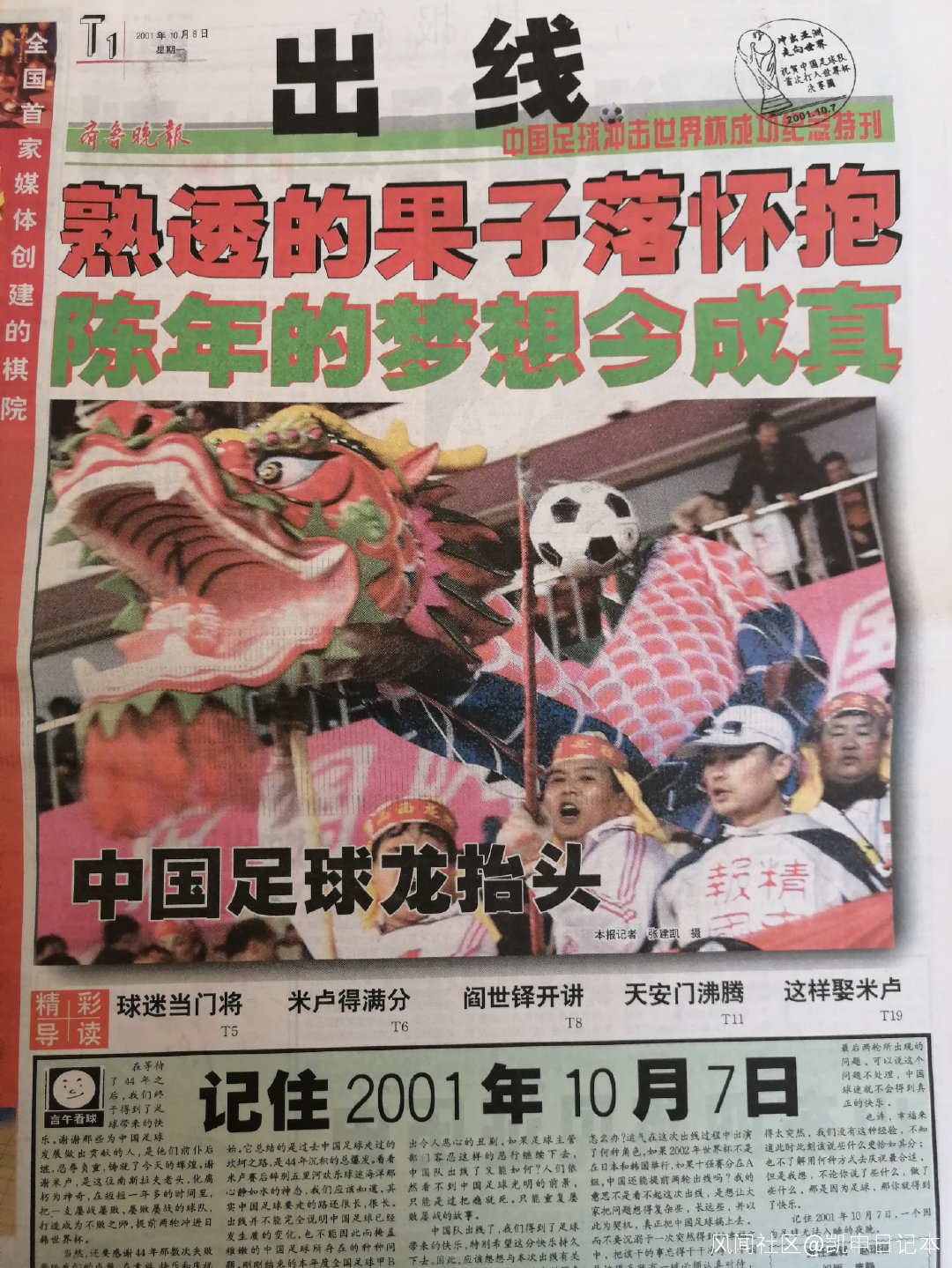 69、2001年10月7日,剛上大一,宿舍裏沒有電視,學校給我們開了一個小教室看球賽。當瀋陽五里河體育場裏1:0的比分保持到終場的時候,電視上打出了幾個大大的紅字:我們出線了。