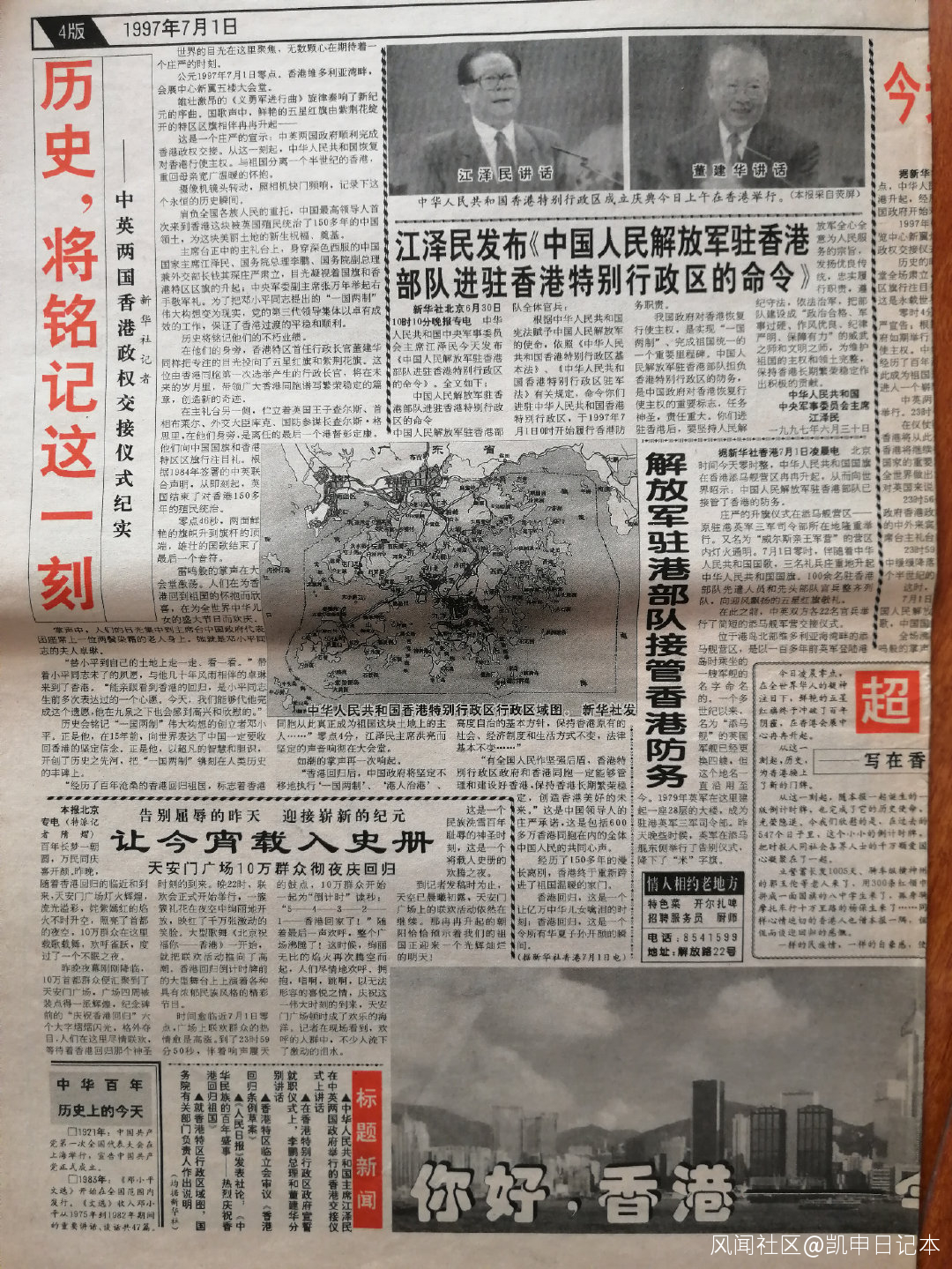 32、1997年7月1日,中國政府開始對香港恢復主權