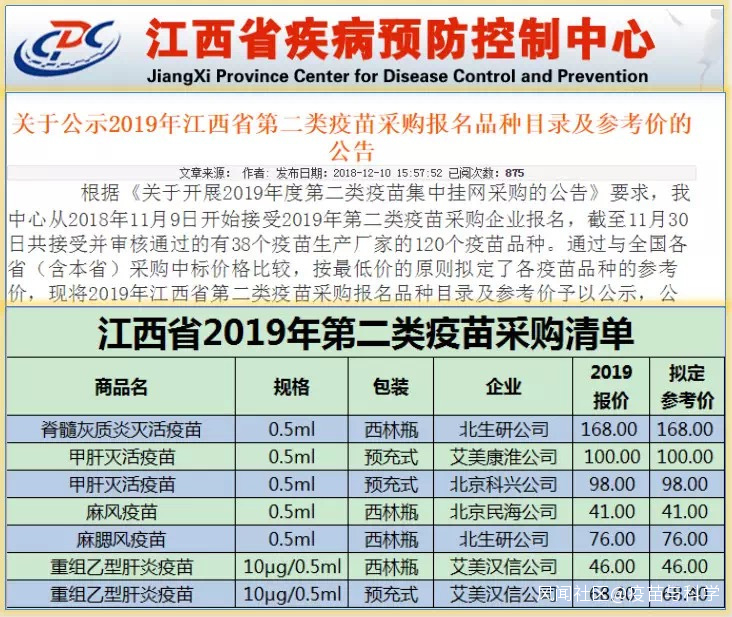 實際上,我寧可相信江西省衞健委是一時頭腦發熱。因為,江西省疾控中心就在2018年12月10日還在公開採購自費疫苗呢。