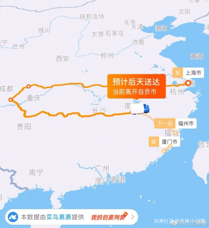 江寧婆婆朋友的這件快遞經歷也差不多,從上海發往廈門,竟然去成都轉了一圈。