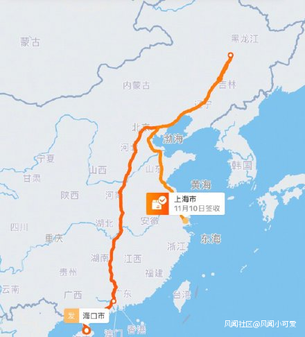這位網友的快遞,從海口市發往上海,竟然在東北三省旅行了一圈才到達目的地。難道是海南的快遞想念遠在東北的親人了嗎?