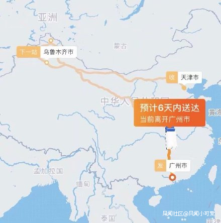 快遞有從最南邊莫名其妙跑到最北邊的,也有從最東邊,莫名其妙跑到最西邊的。下面這位網友的快遞,從廣州發往天津,竟然在烏魯木齊市轉了一圈才回來的。