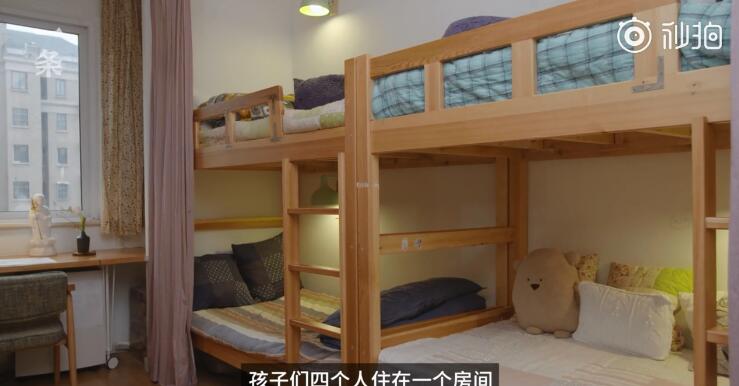 在採訪視頻中,潘蔚還介紹孩子們四個人睡在一個房間: