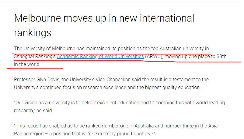 澳大利亞的墨爾本大學也曾使用過ARWU的排名。