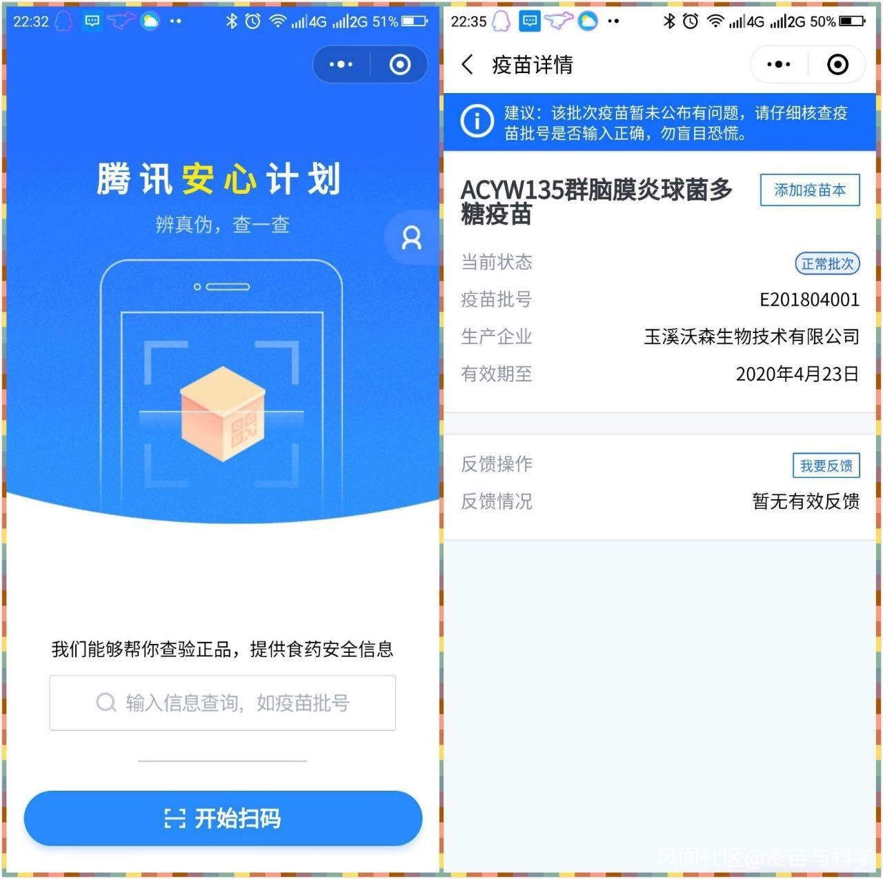 如果收貨方對某批疫苗是否合格有異議,自己可以去公示網站查詢。另外,可以藉助手機上的查詢工具查批號或藥品監管碼來了解這個批號的疫苗是否正常,比如支付寶裏的【疫苗快查】工具、騰訊的安心計劃、艾尼莫疫苗批號查詢系統等。