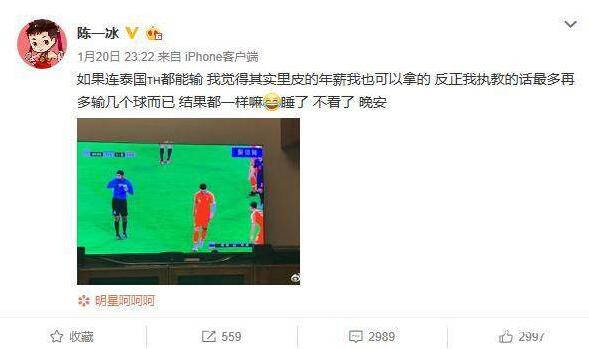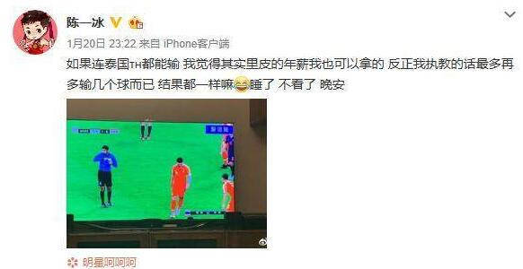 陳一冰的言論,代表了相當大的一部分人,這些人平日並非球迷,對世界足球、亞洲足球乃至中國足球的動態不聞不問,直到大賽,才瞄一眼國足,並把平日的負能量轉為對國足的諷刺挖苦,陳一冰不知道泰國隊的飛躍進步,以為泰國還是中國隊想進幾個進幾個的水平,即使國足艱辛逆轉泰國,也不會改變他們的看法,還是會罵國足“贏了個泰國就慶祝成這樣”。