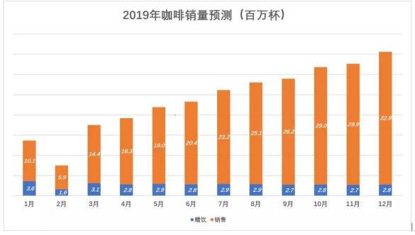 預計到2019年12月,瑞幸咖啡單月銷量可達5410萬杯,贈飲280萬杯,合共5690萬杯。