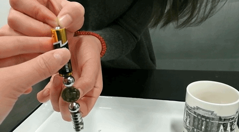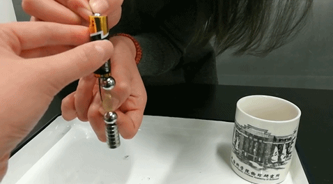 所標杯、導線、膠帶、電池、小鋼球、硬幣、磁鐵