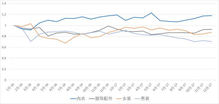二,服飾類商品,內衣「升級」最快,男裝出現「降級」