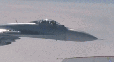 ▲美國偵察機拍攝的俄軍蘇-27戰機高空攔截錄像