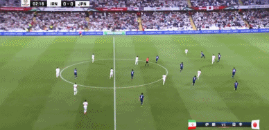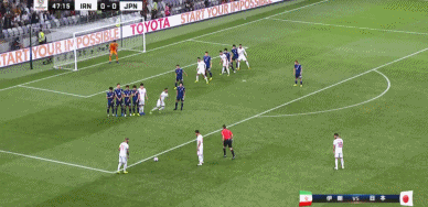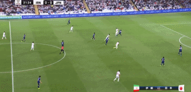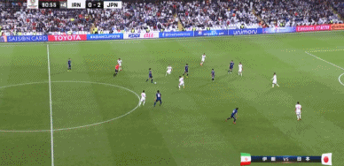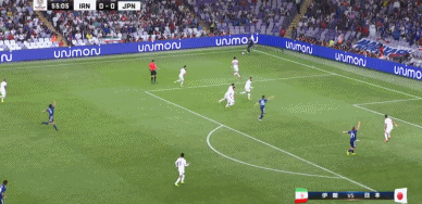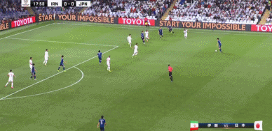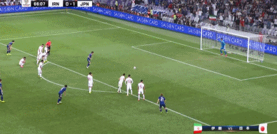 第55分鐘,日本隊破門!南野拓實摔倒在伊朗隊禁區左側,他身後包括卡納尼在內的五名防守隊員突然集體要圍向裁判去解釋什麼,裁判沒有響哨示意比賽繼續,南野拓實抓住機會迅速起身將球傳中,禁區中大迫勇也頭球輕鬆將球頂進球門!1-0!日本隊取得領先!
