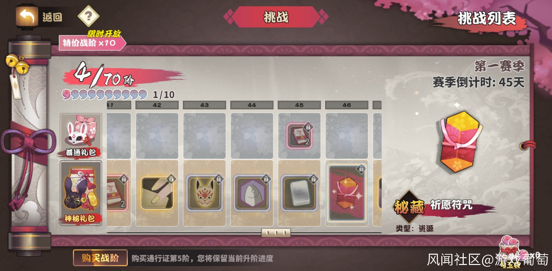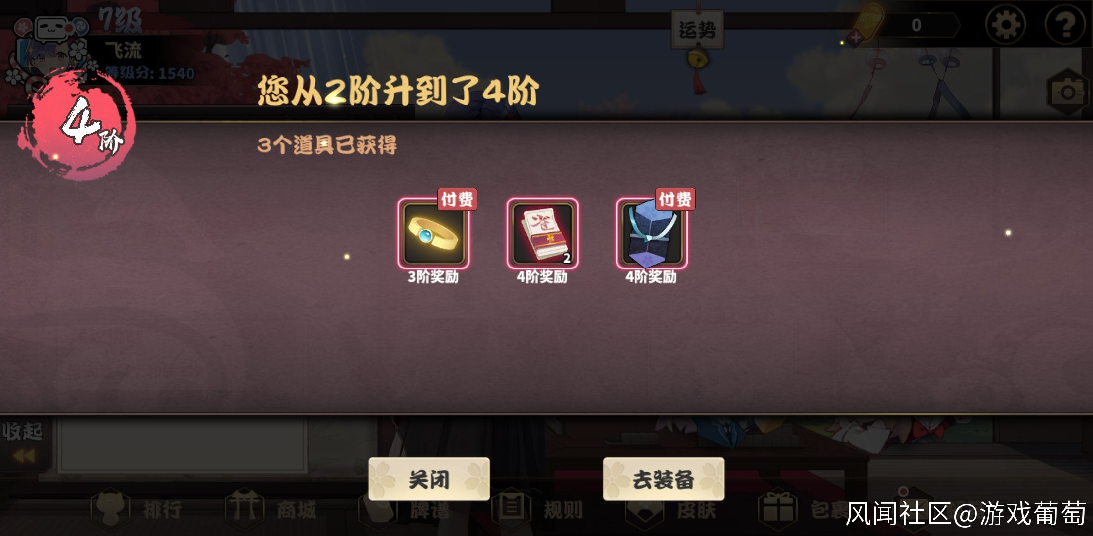《雀姬》同樣也引入了Battle Pass作為其主要付費點。在遊戲中,玩家花費68元或者168元,便可購買普通與豪華這兩種品質不同的賽季通行證,後者的附加效果在於能夠直接提升25個戰階。而遊戲中每七週為一個賽季,玩家通過在賽季內完成勾玉賽或挑戰任務,便能夠獲取勾玉從而提升戰階。每一個戰階的達成,對應着時裝、角色、抽卡代幣等豐富獎勵。