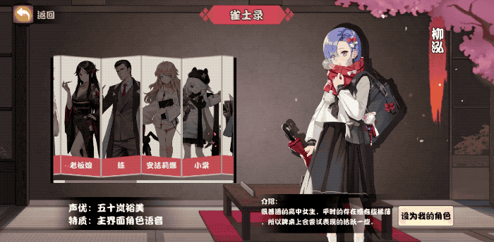 目前的版本中,玩家可通過抽卡、貨幣兑換以及其他氪金方式,來收集不同的個性化雀士。這些形象觀感不一的雀士,以女性居多,但除了用以外化展示外,她們並不帶來其他增益效果。而雀士的養成,只是以桌布、特效、飾品、皮膚等時裝內容來做外觀定製,並不涉及屬性與技能方向的培養。