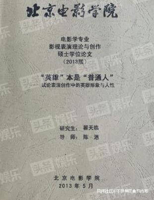 據悉,陳坤為北京電影學院2000年畢業生,而翟天臨碩士畢業論文則發表於2013年5月。頭條娛樂獨家聯繫陳坤團隊,對方稱對此事概不回覆。