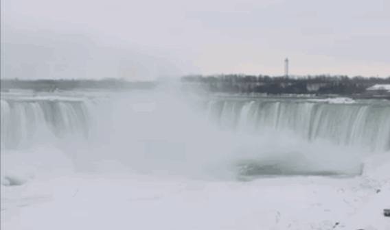 位於安大略省和美國紐約州交界處的尼亞加拉瀑布(Niagara Falls)是個熱門旅遊勝地,冰冷的氣温籠罩着尼亞加拉瀑布,把瀑布變成了這樣一種神奇的景象: