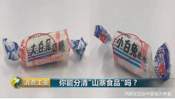 **“乖乖兔”“小玉兔”“小白兔”**2019年1月,記者在黑龍江省齊齊哈爾市周邊的農村集市調查時,發現這裏的糖果銷售非常火爆。在這家農村集貿市場有不少的攤位都在銷售這種類似“大白兔”奶糖包裝的糖果,但是這些幾乎同樣包裝的糖果,居然有形形色色不同的名字:“小白兔”、“小玉兔”、“乖乖兔”……