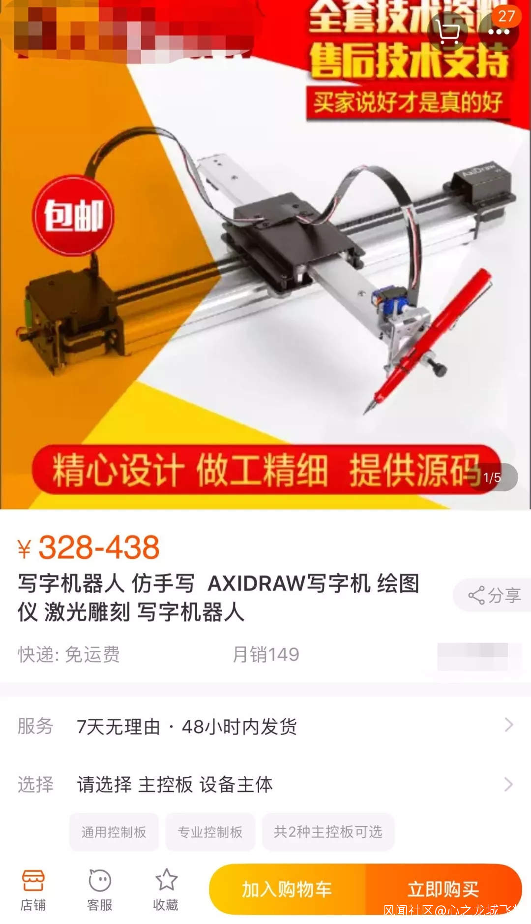 一款月銷量149份的“寫字機器人”,價格從328元-438元不等