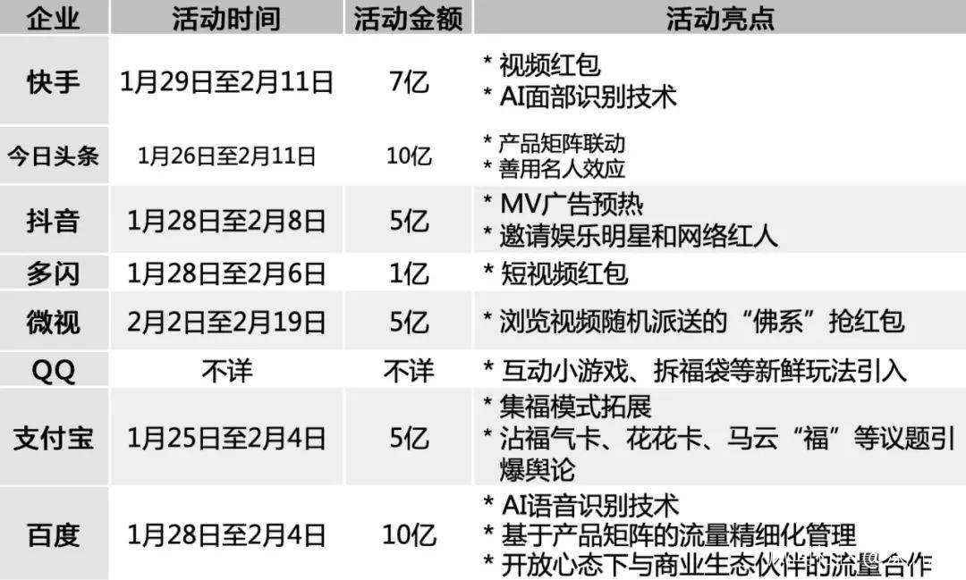 無論是快手的温情牌、阿里的造話題抑或是百度的搭平台,藉助不同的紅包大戰策略,這些參與春節紅包遊戲的玩家們成功實現了拉新或者促活等不同的目的。
