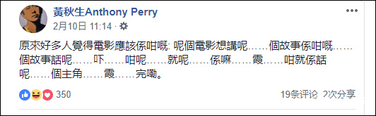 評論區裏有不少香港民眾都不認可黃秋生的想法,紛紛怒懟他的觀點。被堵到啞口無言的黃秋生,只能悻悻地在次日又發文説,“原來有這麼多人覺得電影就應該是這樣的……”