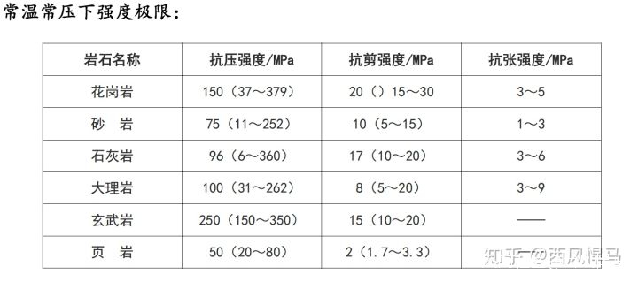 先看看花崗岩岩石力學數據: