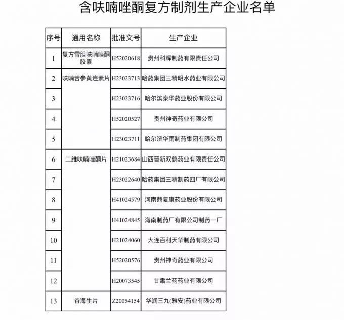 在公告中,國家藥監局給出了四種禁用的含呋喃唑酮的複方製劑,分別為複方雪膽呋喃唑酮膠囊、呋喃苦蔘黃連素片、二維呋喃唑酮片、谷海生片,多用於治療消化系統炎症。