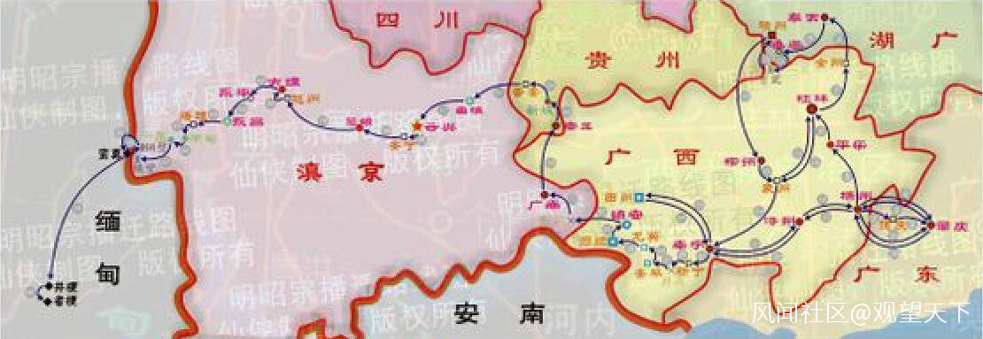 永曆帝抗清路線圖如下: