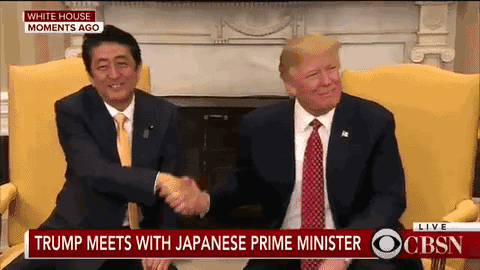 特朗普當選後,安倍立刻就跑到紐約特朗普大廈見面,從而成為特朗普會見的第一個外國領導人。