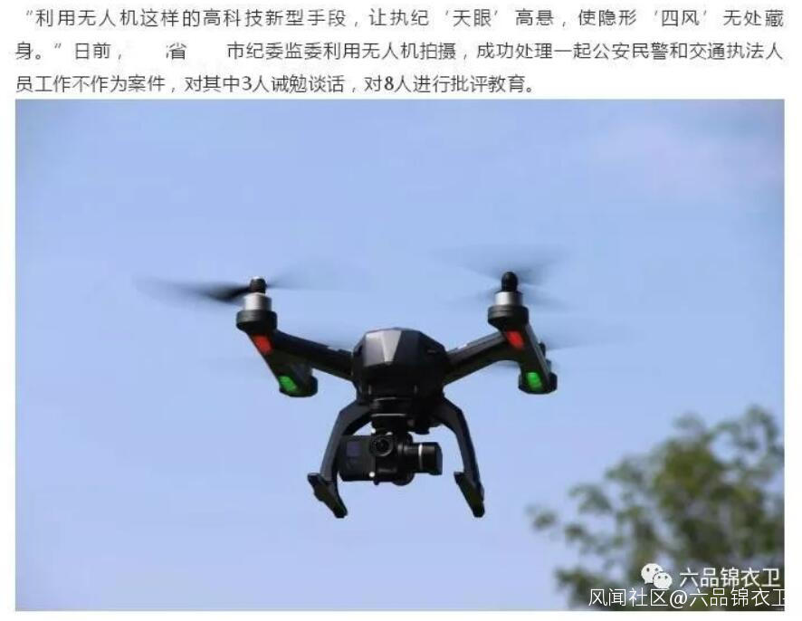 文中説:某省某市的紀委監委利用無人機拍攝,成功的處理了一起公安民警和交通執法人員工作不作為案件,對其中3人誡勉談話,對8人進行批評教育。