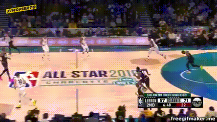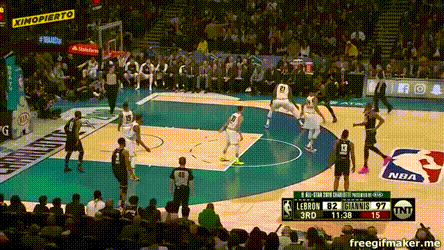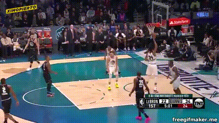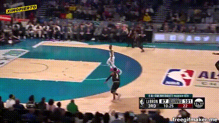 比如跟希臘怪物玩的這一下,讓我想到當初勒布朗那個未完成的籃筐上面一個頭360度空接。