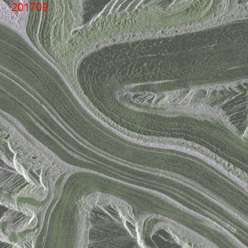 雷達衞星圖像月度產品序列動畫,錫亞琴冰川