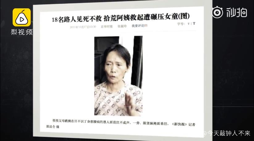不知道大家還記不記得,2011年10月13日,佛山女孩小悦悦在路邊相繼被兩輛車輛所碾壓。期間,十八名路人經過,看見血肉模糊的小悦悦卻視而不見。就在這個時候,同樣經過的拾荒老人陳阿婆卻上前對小悦悦伸出了援手。