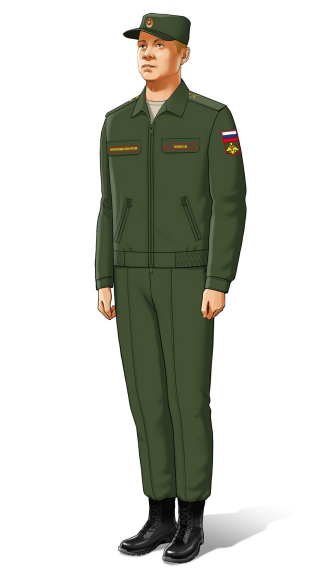 這套純色的勤務服系統是俄軍近年現代化的標誌。在14條例中,俄軍的衣服分為常服,禮服,勤務服和作訓服。其中常服,禮服遵循蘇聯時期91條例的版型,只是換了雙頭鷹徽。作訓服採用新的VKBO分級系統,同時新增了一套適合日常工作穿着的勤務服系統。
