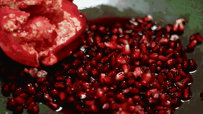 説起石榴,最為出名的還是陝西臨潼,它被稱為“全國五大石榴之冠”。其他產區的石榴雖然也甜,但是有些呈粉色,有些則粉白,而臨潼的石榴無論是外皮還是內核都是紅彤彤的。果皮薄得只需要用指甲輕輕一掐,就能剝離外皮,露出裏面紅色的寶石,每一粒籽秩序排列着,有時甜得齁嗓,咬盡汁水,剩下的核很軟,甚至可以吞嚥下去。這樣的石榴做果汁也是很好的,果渣不澀,可以盡情地在石榴汁裏搖擺。