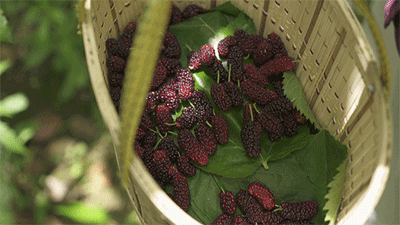 德昌的桑葚熟得比其他地方都要稍早一些,三月底四月初就有大批量桑葚上市了。因為桑樹需要給蠶寶寶吃,所以在種植過程中不能使用農藥,桑葚就成了純天然無污染的時令水果。在這片山區,出產的桑葚因為光熱條件,含糖量高,被譽為“全國果桑之鄉”,並且對外出口。憑空吃它有些寡淡,可以試一試放在酸奶裏,或者做成果醬,亦或者做成桑葚酒都是不錯的選擇。