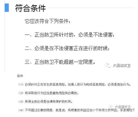 在我國《刑法》中,對“正當防衞”、“緊急避險”都有詳細的規定,但大致都是需要滿足三個條件:1、侵害或危險正在發生。2、只能針對不法侵害或危險,且採取的手段是必需的。3、不能超過必要限度。