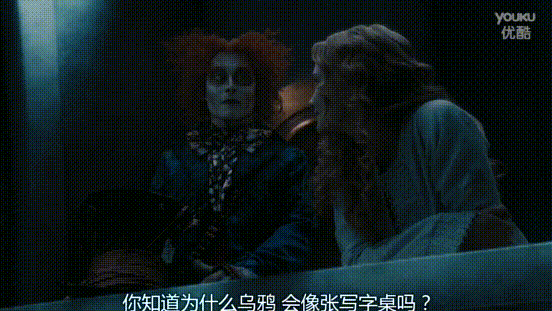 在《愛麗絲夢遊仙境》中,愛麗絲第二次到“仙境”後,瘋帽子一直在向她重複着一句“為什麼烏鴉像寫字枱?”愛麗絲沒有回應,直到準備離開時才終於問起瘋帽子謎底是什麼,他笑得讓人心疼,卻終究沒有告訴她。