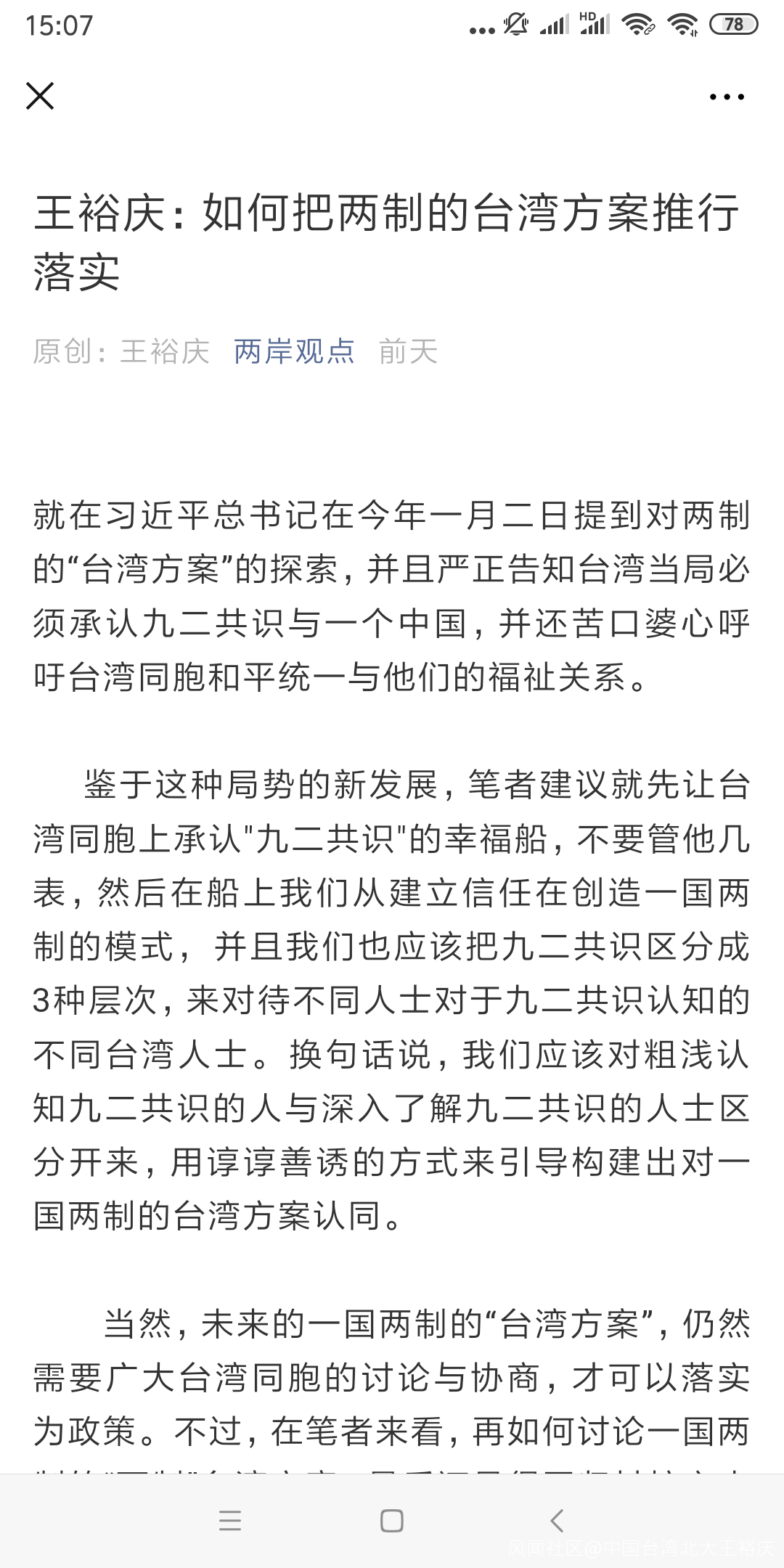 王裕慶:如何把兩制的台灣方案推行落實_風聞