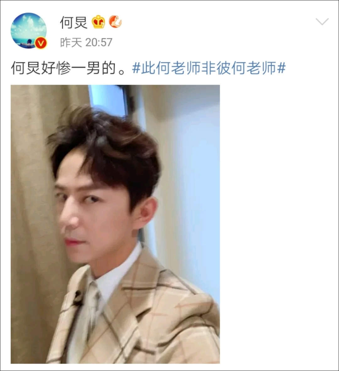 為此,何炅在20日晚近9時許不得不發文做出回應:“何炅好慘一男的。”並自證清白,“此何老師非彼何老師。”與此同時,還配了一張畫質模糊,但是看得出來何炅本人在翻白眼的自拍。